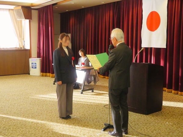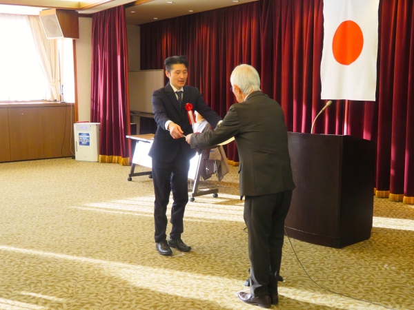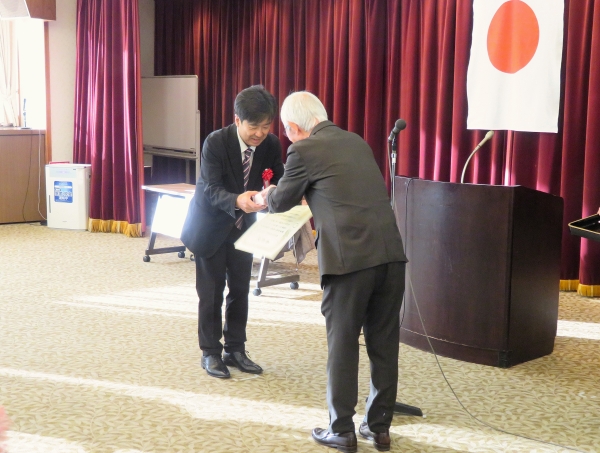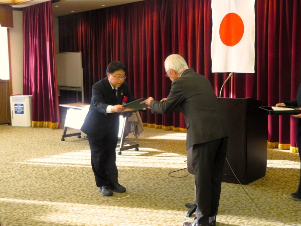 安全の部:安全功労者1名、衛生の部:優良事業場2事業場、労務の部:優良従業員等表彰2名に、渡邊会長から表彰状と記念品を授与いたしました。 受賞された皆さま、心よりお祝い申し上げます。